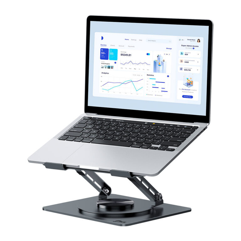 Eleva la laptop hasta la altura de los ojos, ayudando a mejorar la postura y reducir la fatiga cervical.