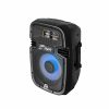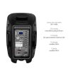 Cabina activa recargable amplificada de dos vías, cuenta con entrada DC para recibir carga de batería externa 12V, incorpora reproductor de formato MP3, WAV, y WMA, lector de memoria SD, USB y sistema Bluetooth, posee una potencia insuperable, entrada y salida auxiliar RCA, iluminación LED frontal, incorpora un control maestro de volumen, control de ecualización para brillo y bajo, entrada plug 6.5mm para micrófono, control de volumen, brillo, bajo y eco del micrófono, incluye un control remoto y un micrófono inalámbrico, 1500W.