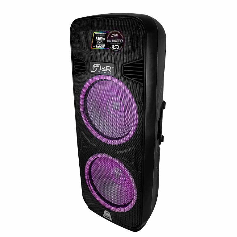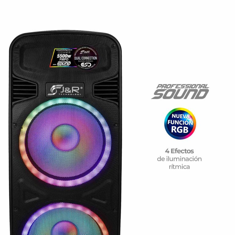 4. Diseño portátil: El diseño con ruedas y el asa de transporte hacen que la Cabina Activa Doble 15″ con Luz RGB J5246 sea fácil de llevar a donde quieras. Lleva la fiesta a cualquier lugar, desde tu hogar hasta eventos al aire libre.