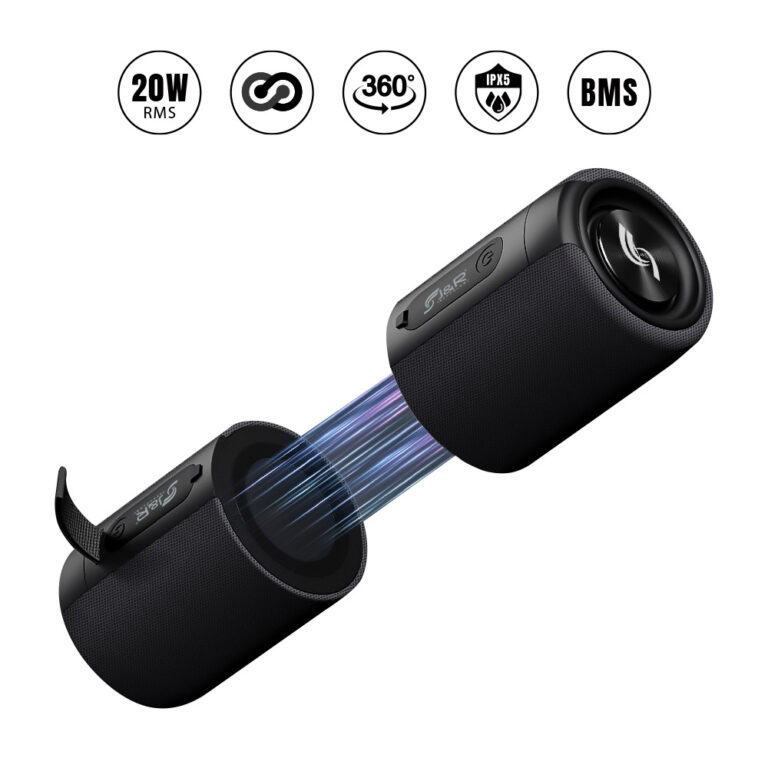 Con 20W RMS de potencia total y un diseño de salida acústica en 360°, este parlante entrega un sonido claro, balanceado y con una presencia sorprendente para su tamaño.
